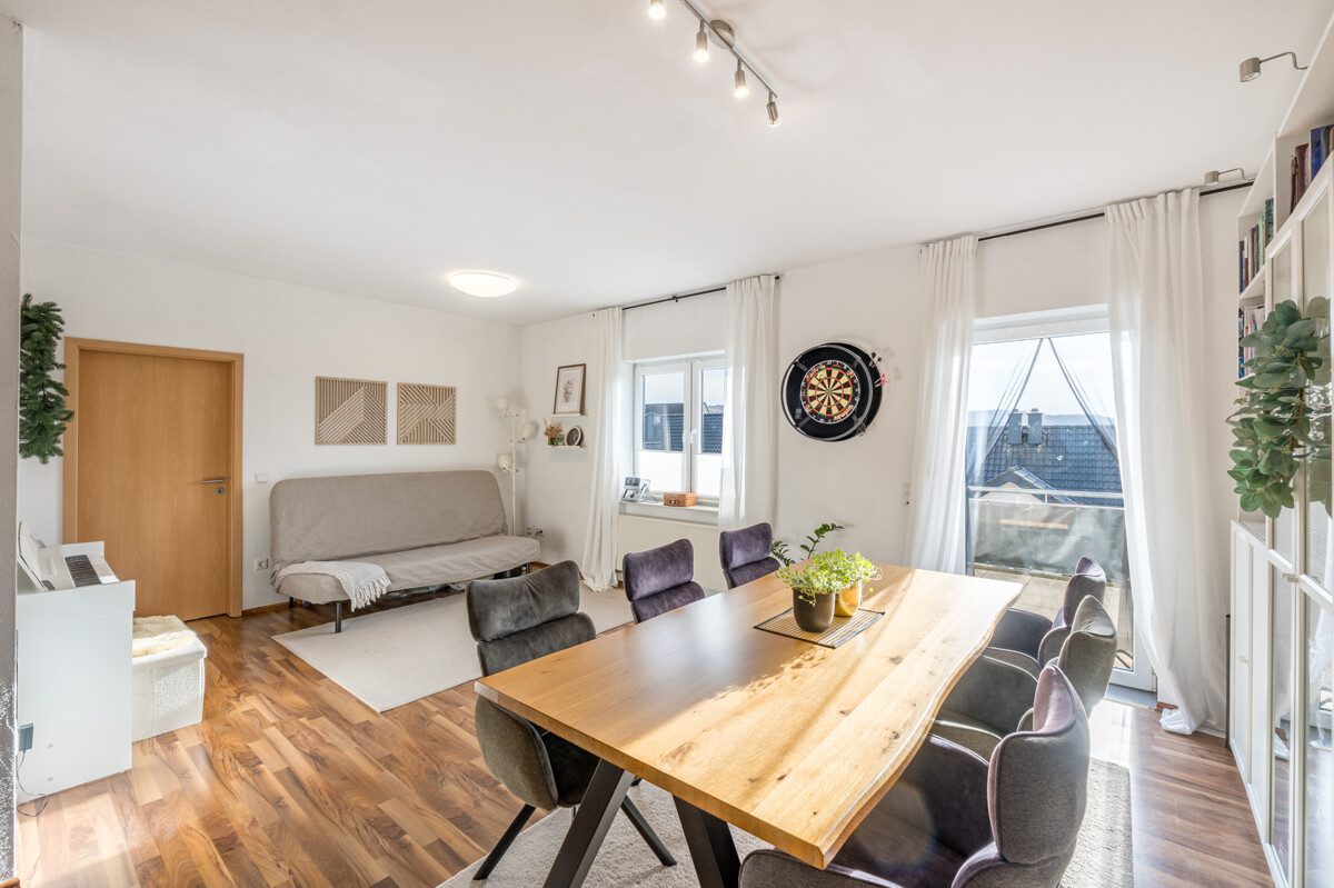 Diese Dachgeschosswohnung mit ca. 90,4 m² Wohnfläche und 3 Zimmern überzeugt durch eine gemütliche Atmosphäre und einen Balkon mit Ausblick. Die Wohnung liegt im Dachgeschoss des Hauses mit 5 Einheiten. Ca. 90,4 m² Wohnfläche verteilen sich auf 3 Zimmer. Ein Balkon erweitert den Wohnbereich ins Freie. Hier kann man sich verwirklichen!