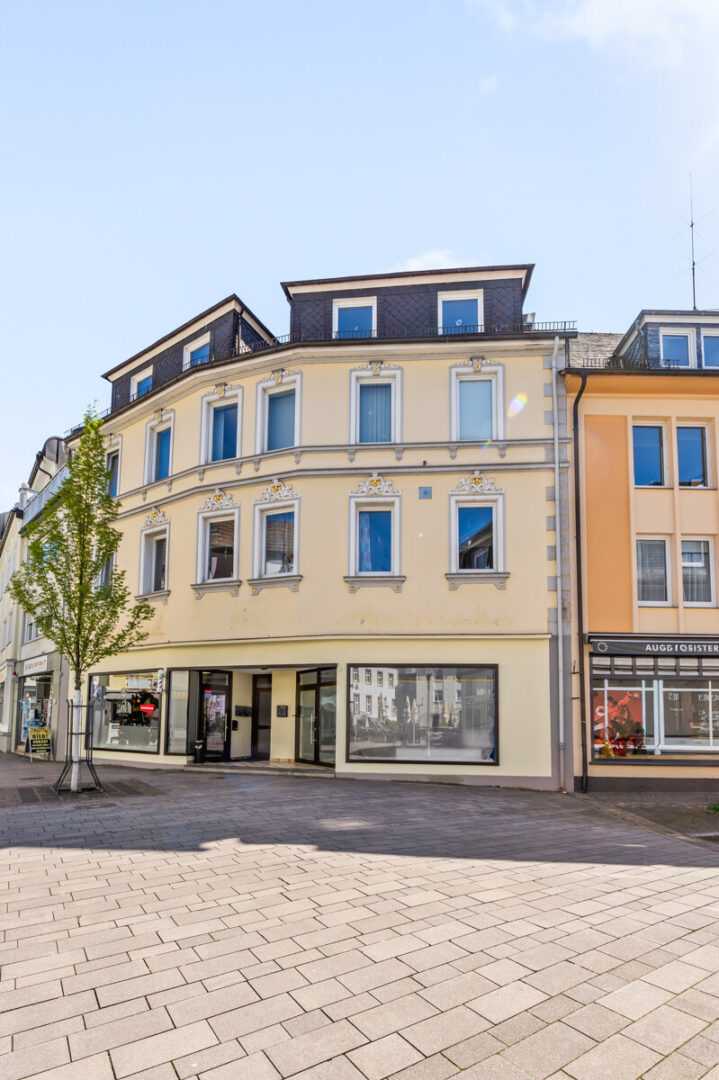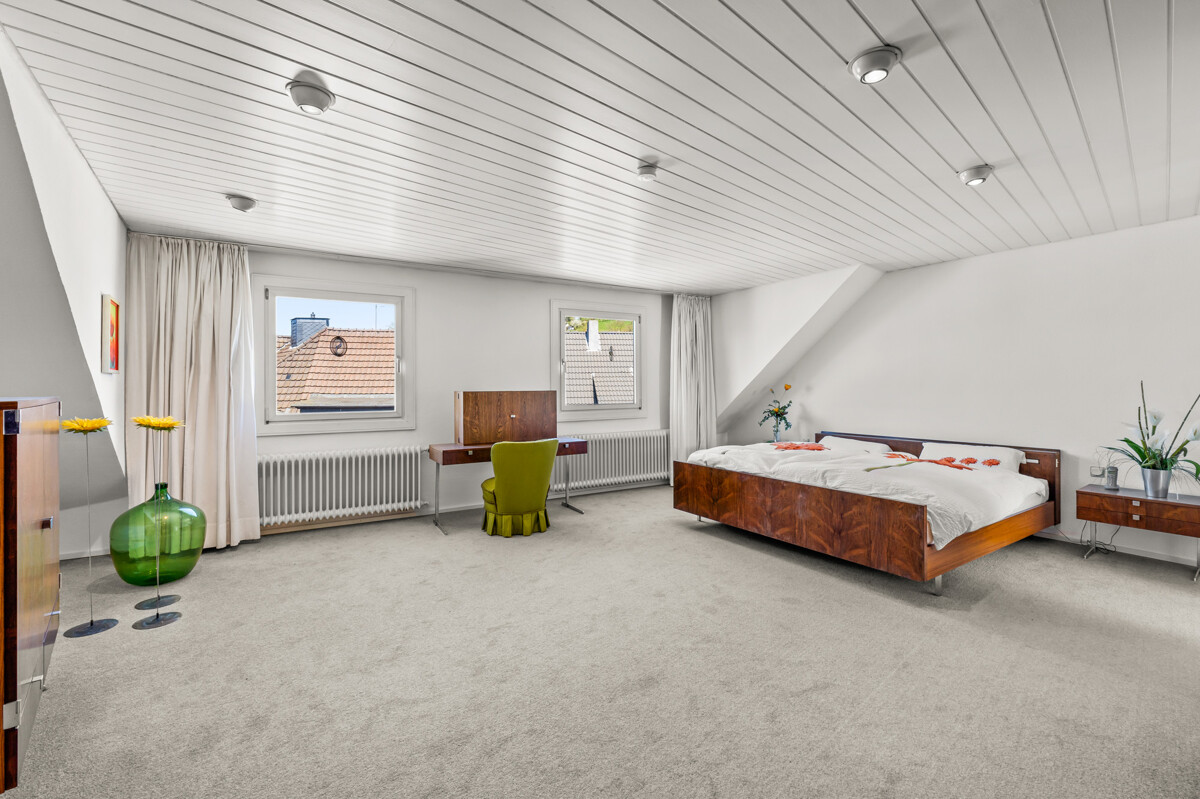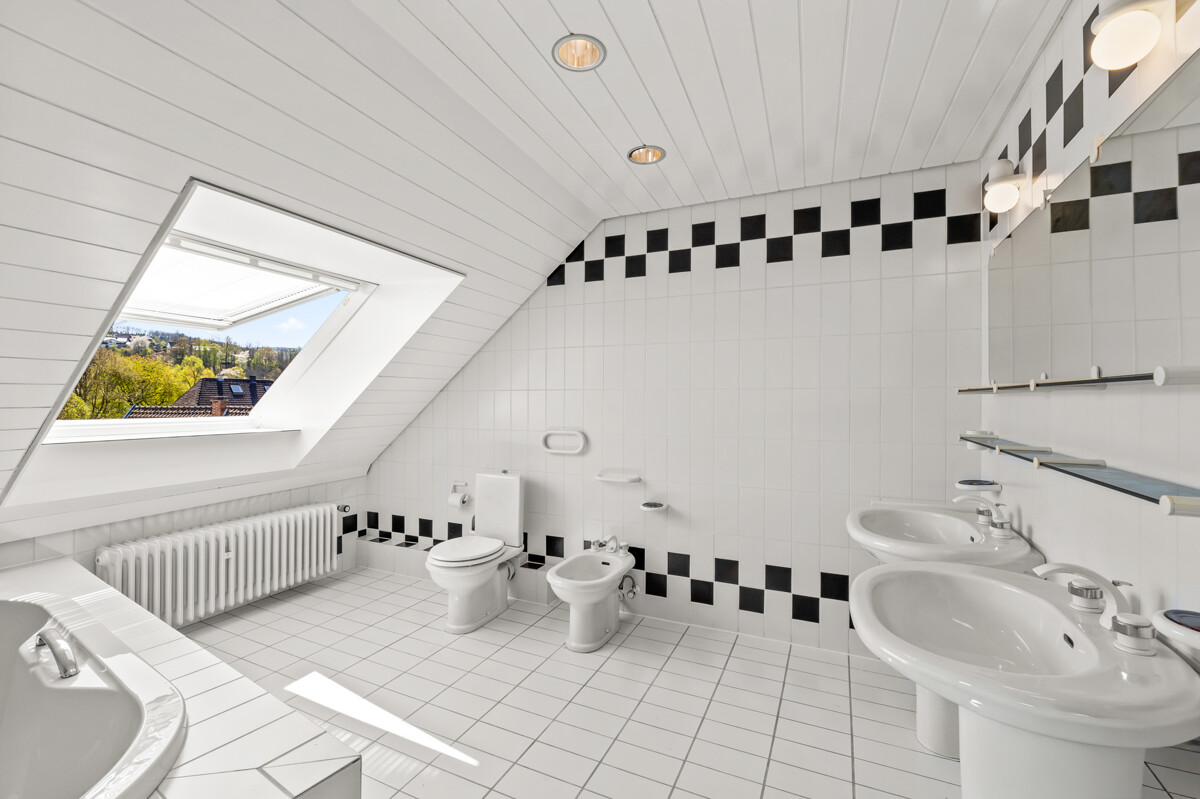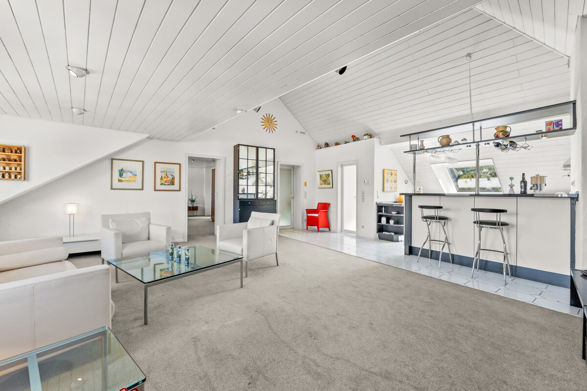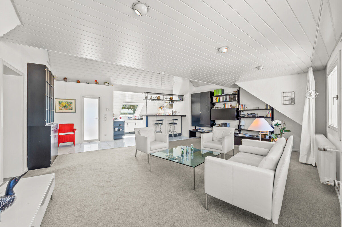 Die Wohnung ist bequem über einen Personenaufzug bis ins 2. Obergeschoss erreichbar. Von dort aus gelangen Sie mit ein paar Treppenstufen in die großzügig geschnittene Dachgeschosswohnung mit einer Wohnfläche von ca. 90 m².