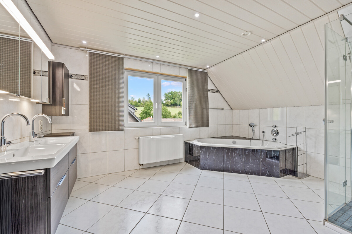 Besonders hervorzuheben ist die Haustechnik, die in dieser Form kaum ein zweites Mal zu finden ist. Die Kombination aus Wärmepumpe, Wohnraumlüftungsanlage, hochwertiger Dämmung und Photovoltaik macht dieses Haus nicht nur zukunftssicher und energieeffizient, sondern sorgt gleichzeitig für ein gesundes und behagliches Raumklima.