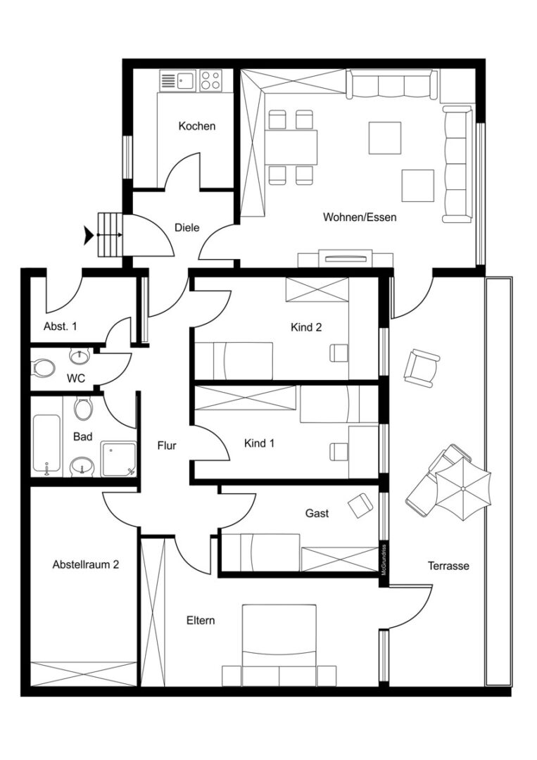 - Balkon: Großer Balkon mit viel Platz für entspannte Stunden im Freien